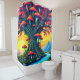 Esta fresca cortina de ducha tiene un árbol de champiñones encima.