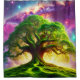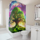 Esta cortina de ducha de bonito tiene un enorme árbol verde retratado en ella.