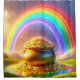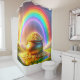 Esta cortina de ducha tiene un arco iris y un tesoro.