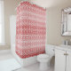 Esta cortina de ducha tiene un diseño art deco de diamantes superpuestos en efecto sombrío de rojo en un campo de blanco.