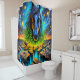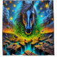 Esta cortina de ducha tiene un diseño artístico de caballo.