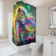 Esta cortina de ducha tiene un gato salvaje retratado en ella.