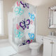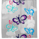 El diseño de esta obra evoca una sensación de ligereza y libertad, con un patrón simplista de mariposas en diferentes tonalidades colocadas sobre un fondo de nubes blancas y grises, lo que da lugar a una cortina de ducha espaciosa y juguetona.