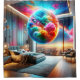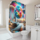 Esta cortina de ducha tiene un diseño de planeta colorido.