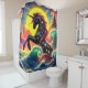 Esta cortina de ducha tiene un unicornio colorido.