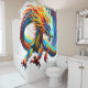 Esta cortina de ducha tiene un diseño de dragón colorido.