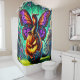 Esta cortina de ducha tiene una extraña fantasía de calabaza retratada en ella.