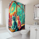 Esta bonita cortina de ducha tiene dos pequeños gatitos mirando a la galaxia por la ventana.