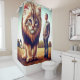 Esta cortina de ducha tiene un gatito enorme.