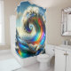 Esta cortina de ducha tiene un diseño artístico de olas oceánicas.