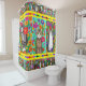 Cortina De Ducha Arte Popular Estilo Whimsical Gato y Flores