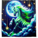 Esta mística cortina de ducha tiene una escena artística de unicornio rayado verde.