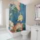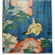 Imagen asiática del vintage incluyendo peonies y un pájaro en un fondo azul