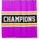 Este diseño deportivo y atlético presenta texto CHAMPIONS en negrita dentro de una franja negra ancha resaltada con doble franjas de carreras blancas y amarillas contra rayas externas de color rosa brillante. El texto de este diseño se puede personalizar.