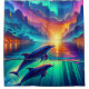 Sumérjase en el encantador mundo de nuestra cortina de ducha "Aurora Dolphins Dance". Este diseño hipnotizante captura a dos delfines saltando con gracia contra el fondo de una aurora boreal vibrante. El cielo de la puesta de sol, pintado con ramas de morado, azul y verde, refleja la superficie del agua, mientras que las montañas lejanas y las luces de la ciudad agregan profundidad a la escena. Es una fantástica mezcla de esplendor marino y maravilla celeste que transformará su cuarto de baño en un refugio mágico.