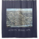 Una bonita cortina de ducha de fondo azul permite cambiar de decoración. Haga clic en el botón "personalizar" y elija otro color. Vista de pájaro de ilustracion vintage de las calles de Austin, Texas (Condado de Travis) con el río Colorado en primer plano. Hermosos cielos azules sobre el horizonte paisajístico. La Institución para Sordos y Muertos y el Asilo de los Insanos y en la esquina inferior.