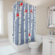 Esta cortina de ducha tiene un diseño invernal de abedules con pájaros rojos sentados entre ellos. También tiene una ranura para un filtro añadido si lo desea.