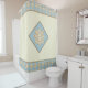 Cortina de ducha azul cielo y crema