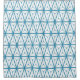Un patrón atómico de mediados de siglo compuesto de líneas azules superpuestas crea un diseño de tipo estrella contra un fondo blanco. El arreglo simétrico proporciona una sensación de equilibrio y armonía a través de toda la imagen.