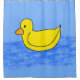 Esta cortina azul de ducha con un pato amarillo tiene un bonito diseño de estilo de anime de palomitas. Popcorn Anime - diseños para sonrisas y risas. Para más diversión, visita: www.popcornanime.com.