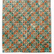 Aciano húmedo a la menta, cuadrados manchados de beige y coral y líneas transversas formando algunos triángulos y rayas con grabado en relieve tallado.