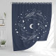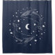 Dos ballenas con fondo azul oscuro, luna y estrellas.