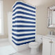 Cortina de ducha de rayas azules y blancas. Patrón real de rayas azules y blancas.