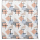 Esta cortina de ducha tiene un diseño Bauhaus de rectángulos repetitivos, cuadrados, diamantes y triángulos en tonos marrones, grises, azules y naranjas.