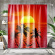 Transform your bathroom into a tranquil escape with this stunning shower curtain design, featuring a vivid tropical sunset scene. A glowing sun dips into the calm ocean, casting warm hues of red, orange, and gold across the sky and water. Silhouetted palm trees frame the composition, with a relaxed figure lounging in a hammock between two trunks, evoking a sense of serenity and island bliss. The rich colors and peaceful imagery create a soothing, vacation-like atmosphere—perfect for adding warmth and elegance to your daily routine.