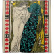 Pájaro de pavo real - Esta hermosa imagen de arte de principios del siglo XX muestra un pavo real y una figura, con diseño estilizado. Obra artística de arte fino.