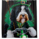 Un amigo peludo detrás de las manillares de una brillante bicicleta verde, usando un traje verde del Día del San Patricio que hace que las cabezas se vuelvan. El perro está vestido con un conjunto festivo, con una corbata verde de arco y un sombrero superior a juego que se sienta cómodos sobre su cabeza. El conjunto presenta un diseño intrincado de rocas de champú y leprechauns, lo que deja claro que este perro está listo para celebrar el Día de San Patricio con estilo.