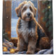 A heartwarming holiday scene featuring a dog sitting peacefully beside a window, surrounded by glowing Christmas lights. This cozy and festive design captures the spirit of the season, perfect for adding warmth and charm to any space. Ideal for dog lovers and holiday decor enthusiasts.