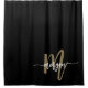 Cortina De Ducha Black Gold Modern Script Girly Monograma Nombre