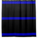 Cortina de ducha fina de Blue Line. Blue Line fino es un símbolo usado por la aplicación de ley, originando en el Reino Unido pero ahora frecuente en los Estados Unidos y el Canadá para conmemorar a agentes de la autoridad caidos y para simbolizar la relación de la aplicación de ley en la comunidad como los protectores de civiles de elementos criminales. Es una analogía a la línea roja fina del término. Cada raya en el emblema representa ciertas figuras respectivas: la línea de centro azul representa la aplicación de ley, la raya negra superior representa el público mientras que la parte inferior representa a los criminales. La idea detrás del gráfico es que la aplicación de ley (la línea azul) es qué defiende entre la violencia y la persecución los criminales de las víctimas supuestas del crimen.