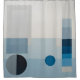 Los bloques de color azul y gris, un pequeño círculo azul y un círculo más grande, negro y gris se combinan para formar una bonita cortina de ducha de arte moderno minimalista.