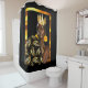 Con una representación audaz y hermosa de una mujer negra adornada con joyas de oro exquisitas y una corona regia, esta cortina de ducha se destaca contra un fondo negro rico. El borde es una mezcla impresionante de tonos de oro, cobre y bronce, entrelazados con patrones geométricos intrincados que añaden profundidad y sofisticación.