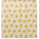 La cortina de ducha de Boho Daisy Rain presenta un patrón dibujado a mano con grandes margaritas en naranja y amarillo con un fondo de lluvia multicolor.