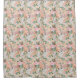Una encantadora cortina de ducha boho trendy floral rosa blanca melocotón verde y eucalipto.