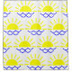 Esta cortina de ducha tiene un diseño de Boho de medio círculo con líneas para hacer sol y vieiras para hacer agua.