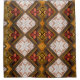 El bordado de lana retro colorido al estilo de los años 60 o 70. Verde, naranja, blanco, marrón y rojo en diferentes tonalidades. Fotografía.