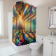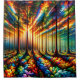 Esta cortina de ducha tiene una foto del bosque de bonitos.