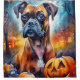Cortina De Ducha Boxeador de Halloween con calabazas asustado
