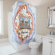 Esta cortina de ducha presenta una historieta original de un solo panel del mundo de Toe's Town.