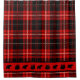 Funda roja y negra con rayas rojas, osos negros y árboles.