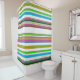 Diseño artístico de rayas en rosa, blanco, azul, verde y amarillo.