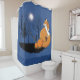 Un zorro rojo se sienta junto a las calabazas y las hojas de otoño. Algunas hojas del otoño vuelan hacia el bosque detrás del zorro