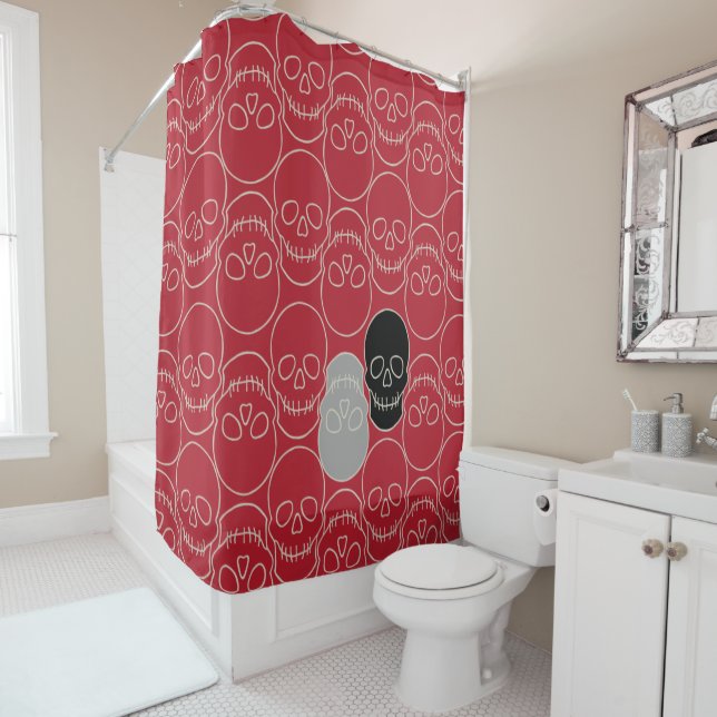 Cortina De Ducha Calaveras - Rojo en sangre y blanco óseo