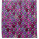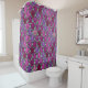Esta cortina de ducha tiene un diseño art deco de tulipanes de pentagones y trapezoides en diferentes tonalidades de morado.