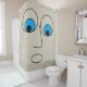¿Estás buscando una cortina de ducha divertida para tu baño? ¿Qué tal este 'asustado' dibujo de la cara de un hombre con enormes ojos azules diseño cortina de ducha? ¿De qué está tan asustado? Tal vez nunca sepamos...