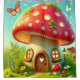 Esta fantástica cortina de ducha tiene una casa de setas retratada en ella.